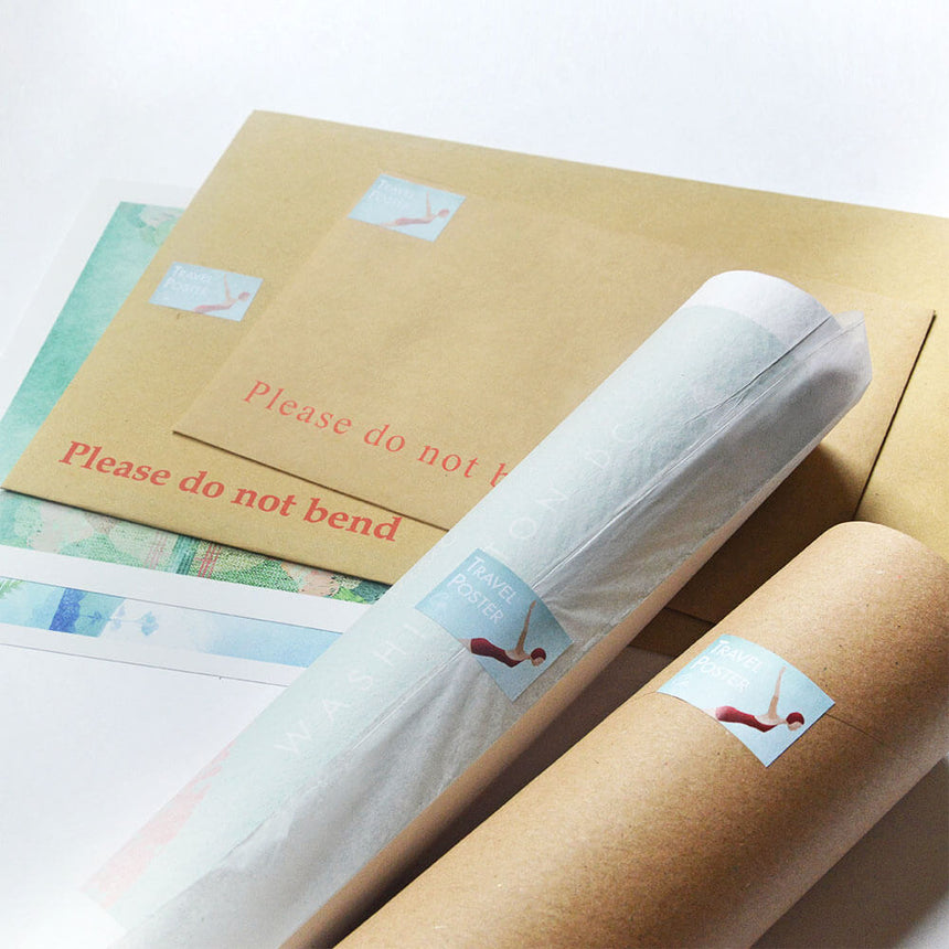 Our A5 and A4 prints ship in sturdy cardboard envelopes and all other sizes ship in rigid cardboard tubes.